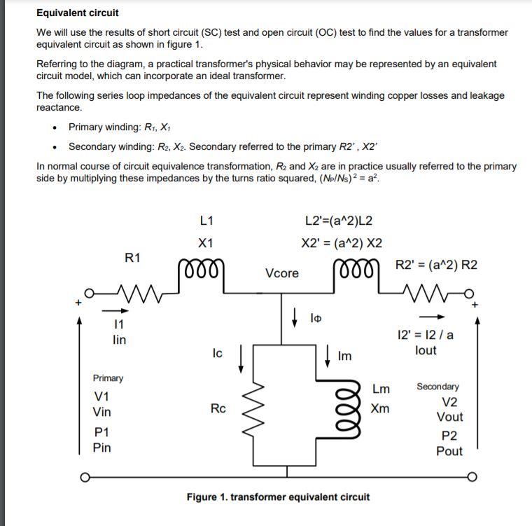 It is performed at rated voltage A. Determine aThe equivalent impedance bThe equivalent resistance cThe equivalent reactance.